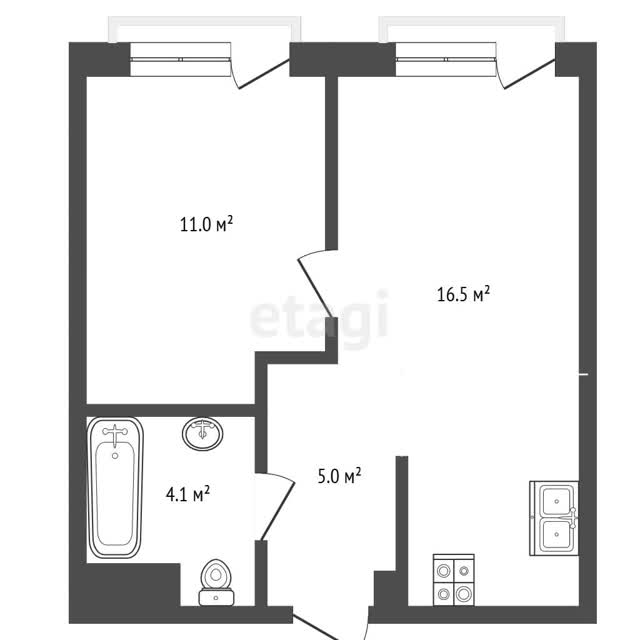 Удобная планировка, кухня - гостиная - 17 кв.м., спальня 11м2, просторный санузел - 4,1 кв.м, прихожая 5 м. Кирпичный дом обеспечивает хорошую тепло и шумоизоляцию!!! О